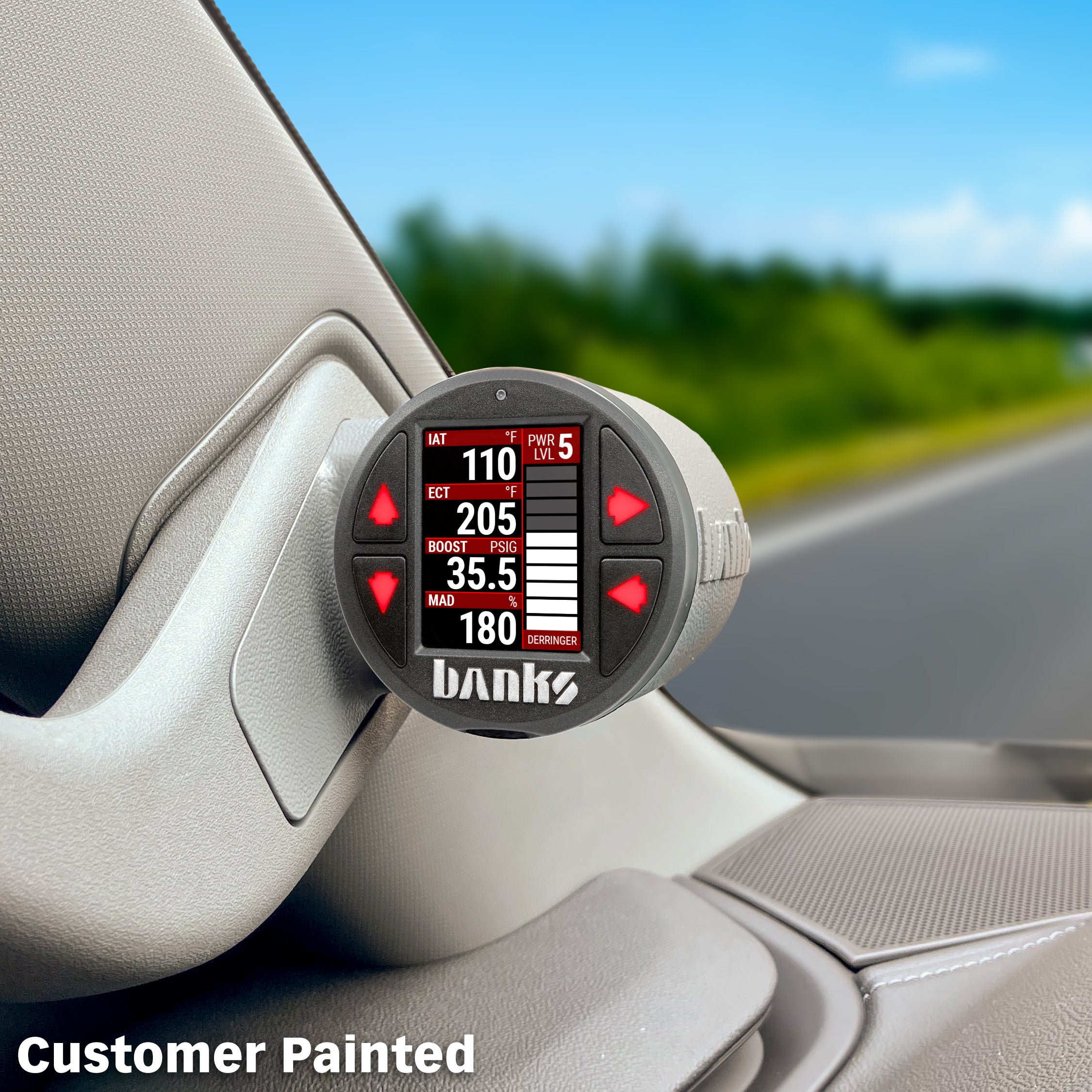 All pods come standard with a natural black finish. For those who want paint to color-match with their interior, visit bankspower.com/paint