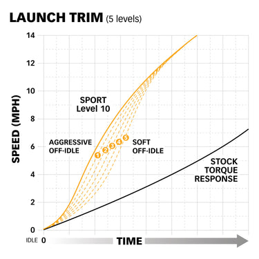 If you've selected an aggressive Master Torque Response Curve for maximum mid-range punch, but find it too aggressive at low speeds, choose from 5 levels of Launch Trim to soften torque delivery below 10 mph.